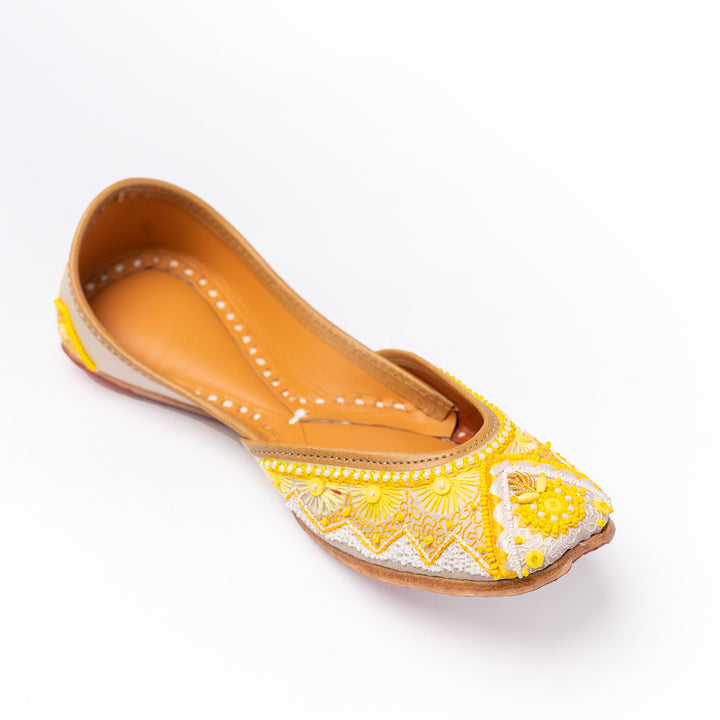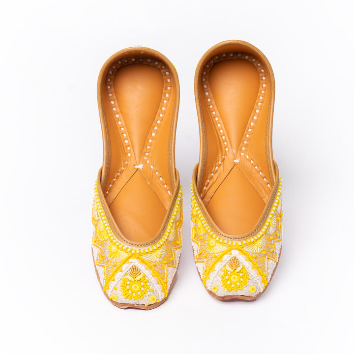 Make a bold, beautiful statement with Genda Glam, the sunshine-hued ladies’ jutties from The Silver Hills. Drenched in a vibrant yellow shade and crafted with intricate detailing, these trendy flats are your go-to for adding a pop of color and comfort to any outfit—ethnic or contemporary.