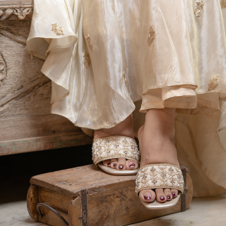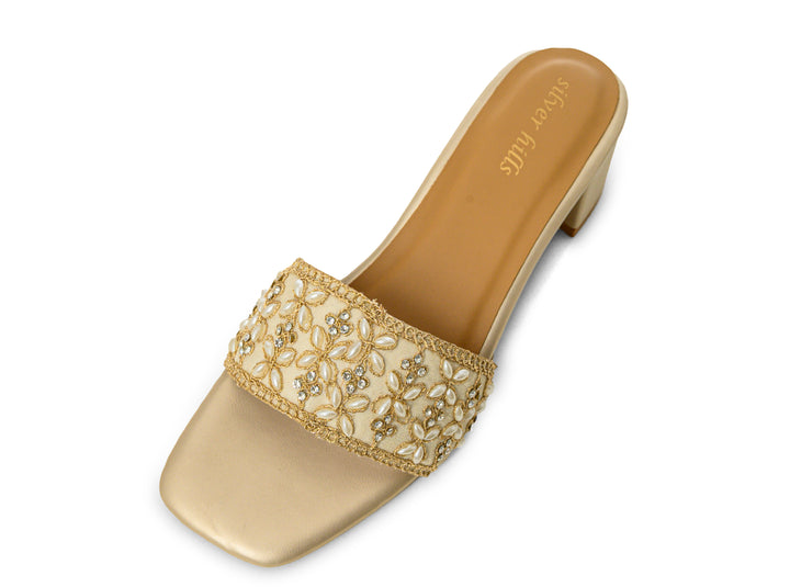 Grace meets glamour in our Golden Bloom Heels—adorned with delicate floral embellishments and a rich golden finish. These statement heels are perfect for festive occasions, weddings, or any moment you want to shine with elegance.