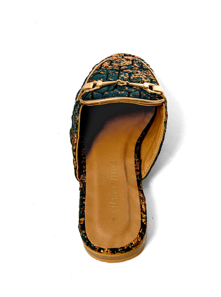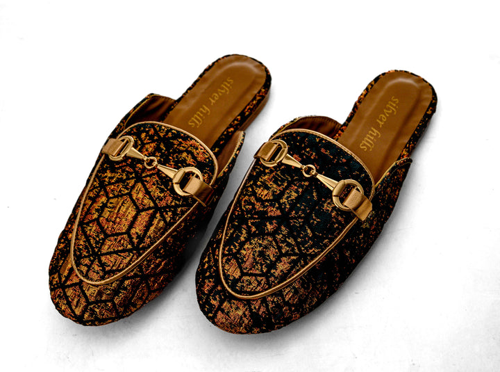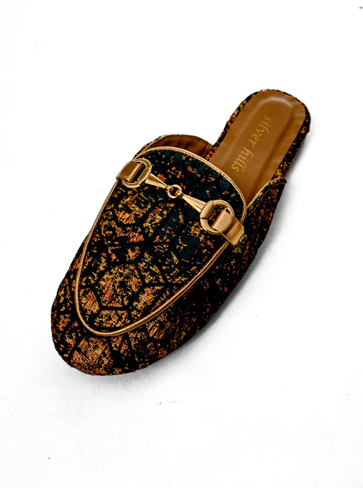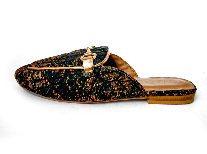 Own your royalty with Golden Mule—richly patterned fabric paired with a golden buckle finish. These mules effortlessly elevate your ethnic or Indo-western look with a regal flair.