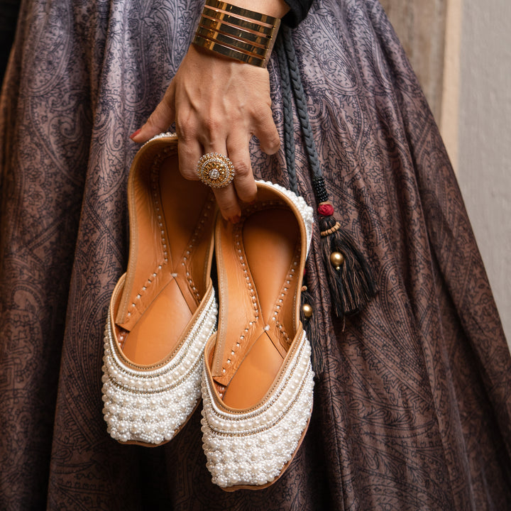 Graceful, timeless, and effortlessly stylish — the Noor Jaan jutties in classic white are a true wardrobe essential for today’s modern woman. Handcrafted with care and designed for all-day comfort, these ladies’ jutties are the perfect fusion of traditional charm and contemporary flair.