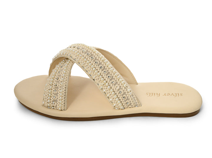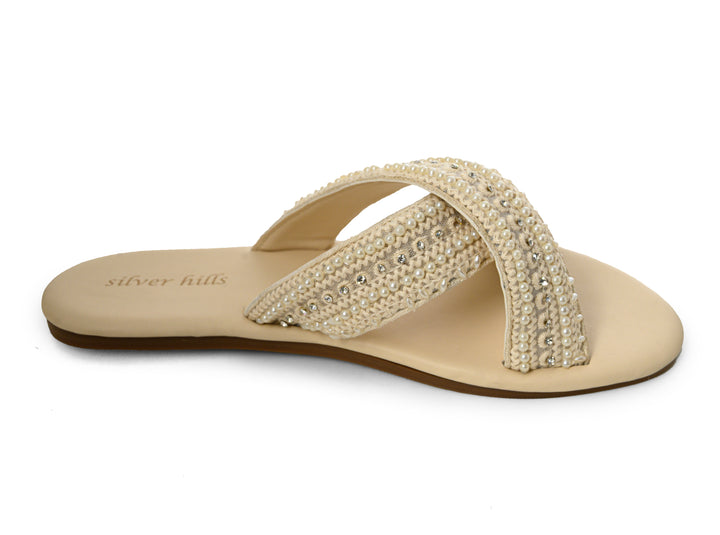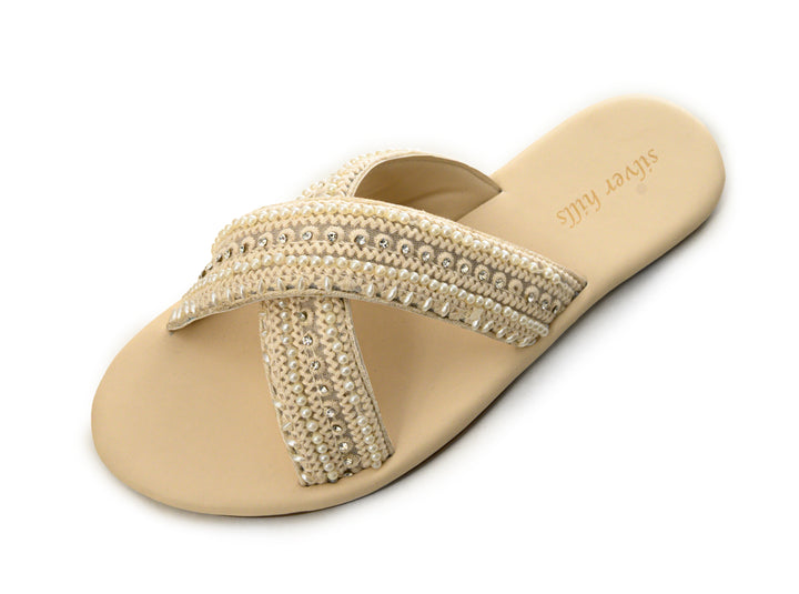 Chic and charming, Pearl Cross wraps your feet in a criss-cross pearl design that’s stylish yet soothing. A versatile match for both jeans and kurti looks.