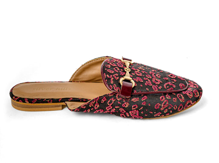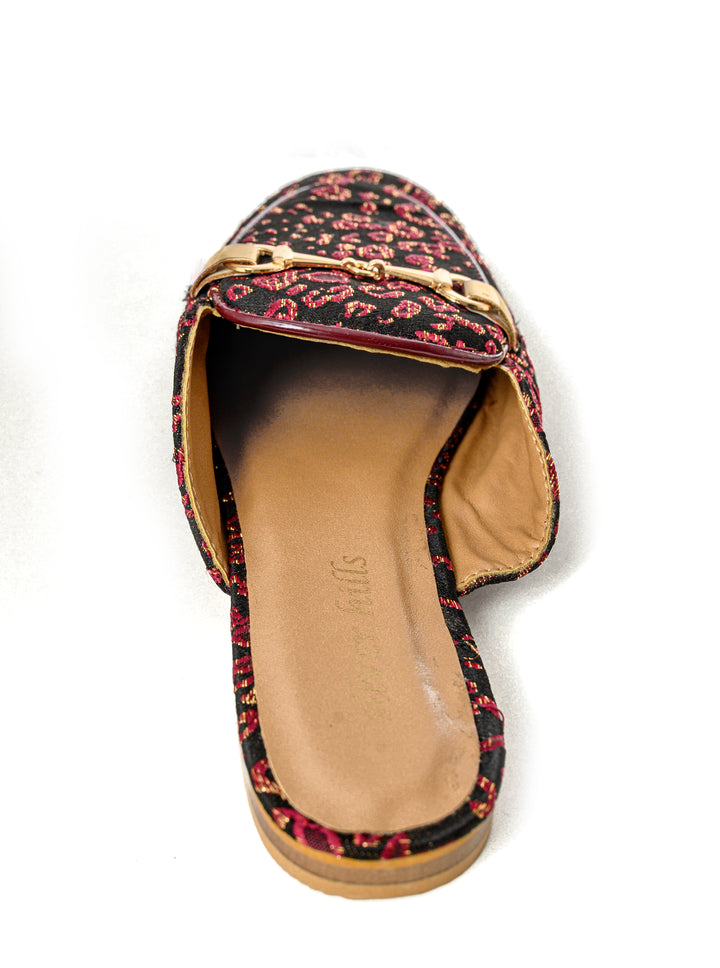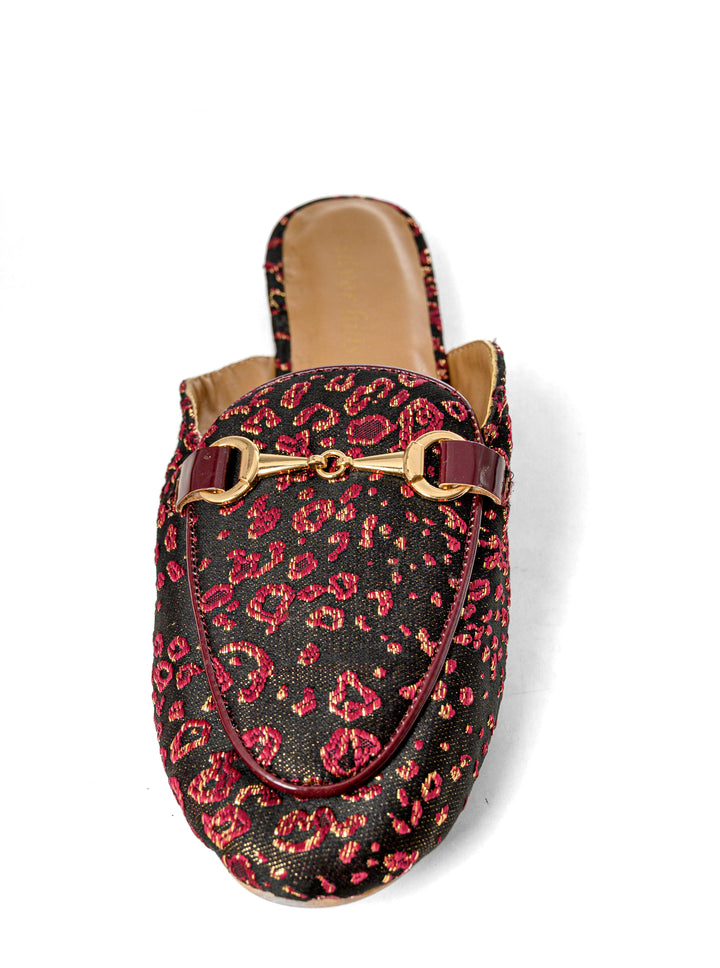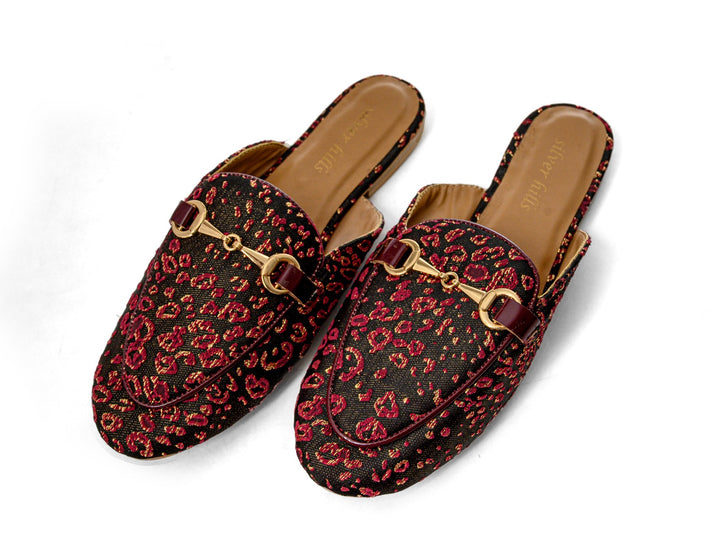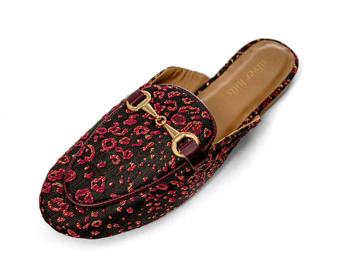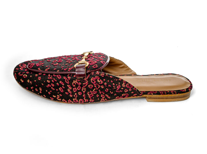 Make an imperial impression with Royal Rouge Mule—luxurious jacquard finish with regal gold detailing. A classy blend of tradition and sophistication.
