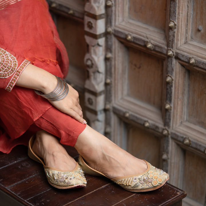 Step into the spotlight with Swarna Sparsh, the radiant golden jutties by The Silver Hills. Designed to bring elegance, sparkle, and all-day comfort together, these ladies jutties are your perfect match for festive flair and everyday glam.